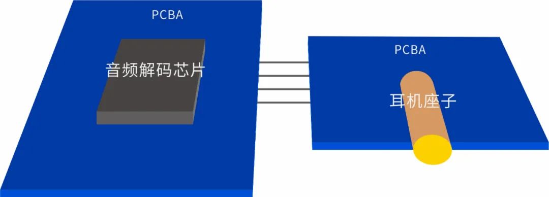 硬件PCBA連接如(圖3),耳機(jī)座子側(cè)的PCB客戶還嘗試做了4層板和6層板,目的是增加地層(增加地面積)。