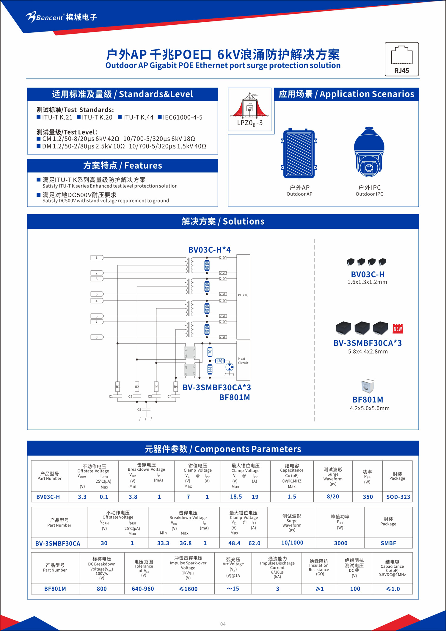 針對(duì)網(wǎng)口的浪涌防護(hù),我們帶來(lái)了SMBF系列產(chǎn)品,實(shí)現(xiàn)小體積,大通流的需求: